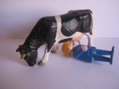 ^El hombrecito azul de playmobil ordeñando una vaca autóctona