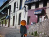 El hombrecito azul de palymobil disponiéndose a entrar en el Ateneo Obrero de Gijón NEL AMARO 2008 / laimuseum