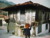 ^El hombrecito azul de playmobil ante los garajes de Miguel Angel García-Pola en La Cuadriella, Turón NEL AMARO 2008 / laimuseum